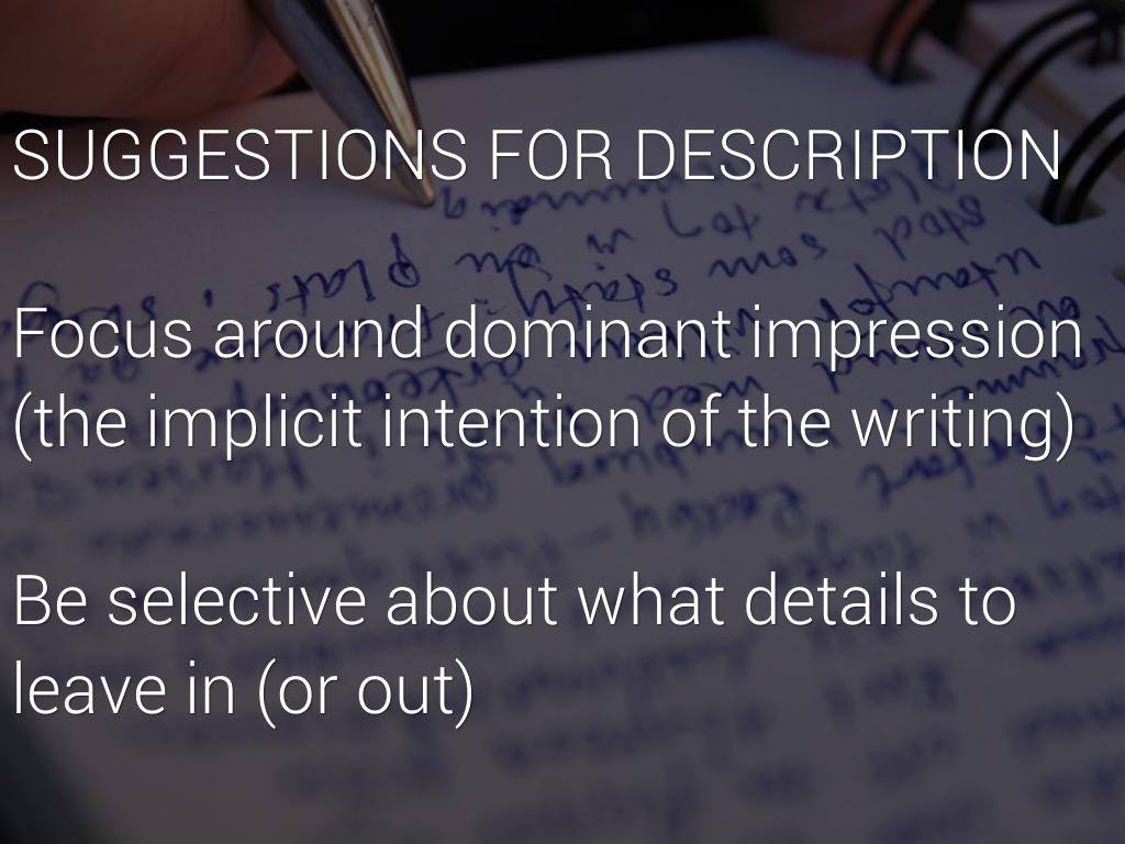Focus around dominant impression (the implicit intention of the writing)