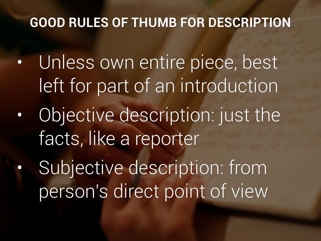GOOD RULES OF THUMB FOR DESCRIPTION