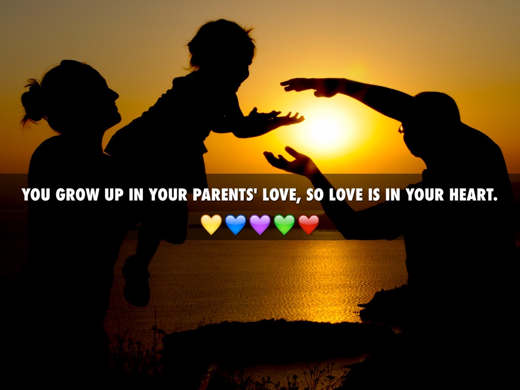 YOU GROW UP IN YOUR PARENTS' LOVE, SO LOVE IS IN YOUR HEART.