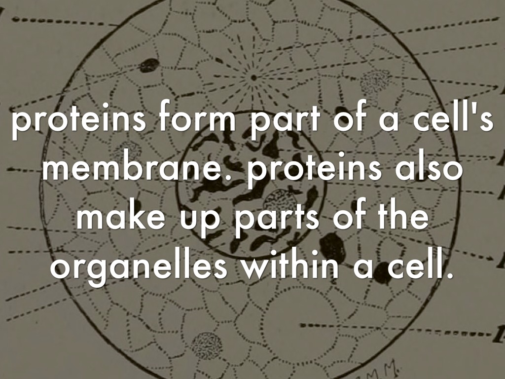 proteins form part of a cell's membrane. proteins also make up parts of the organelles within a cell.