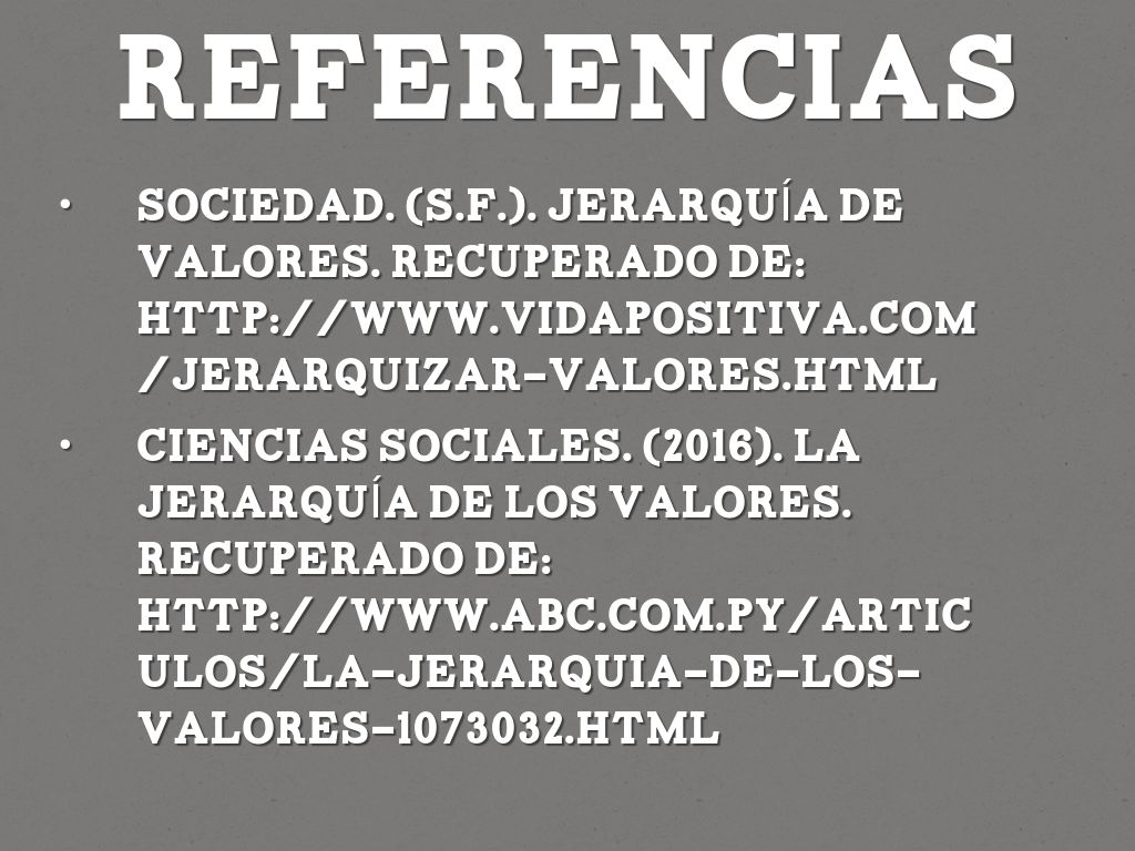 sociedad. (S.F.). jERARQUÍA DE VALORES. rECUPERADO DE: