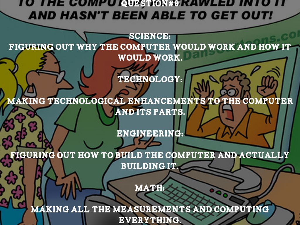 I think A, Information and communication, does because the computer can be used to look up information, and it can also be used for communication, if you want to E-mail somebody.