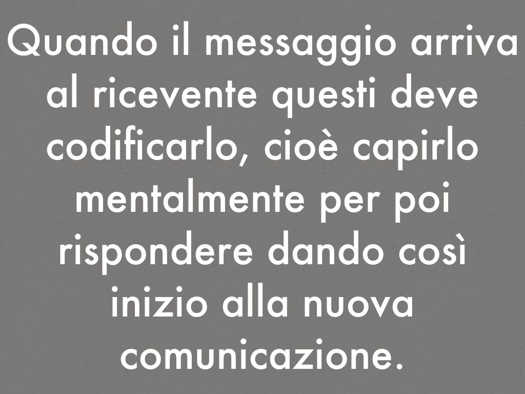 Quando il messaggio arriva al ricevente questi deve codificarlo, cioè capirlo mentalmente per poi rispondere dando così inizio alla nuova comunicazione.