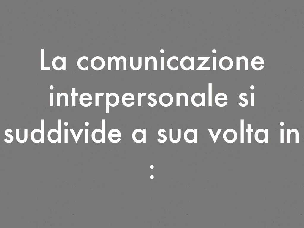 La comunicazione interpersonale si suddivide a sua volta in :