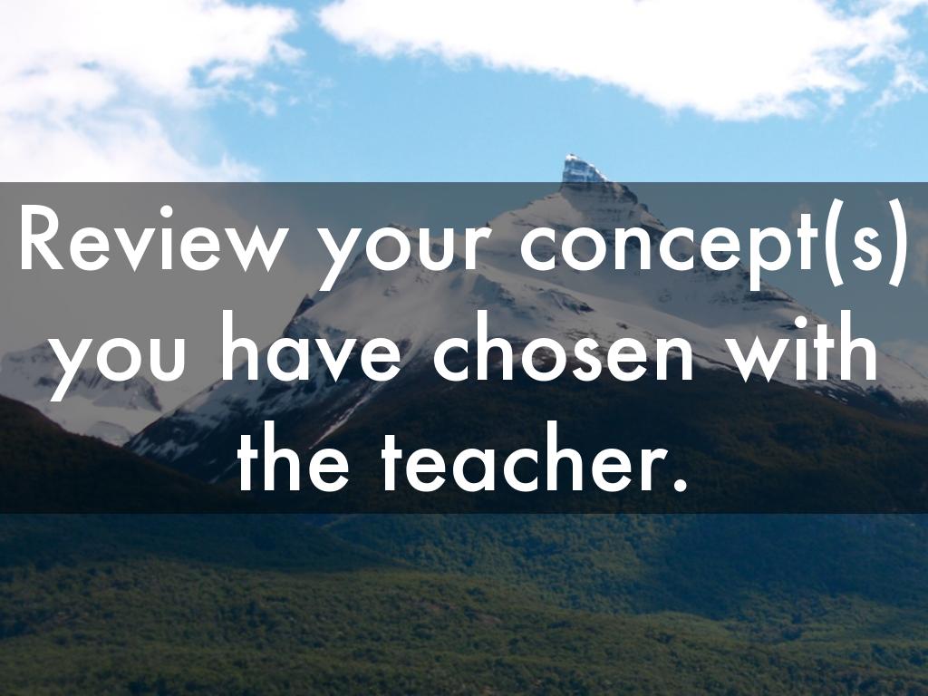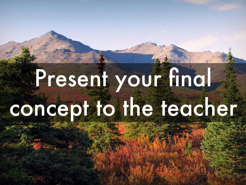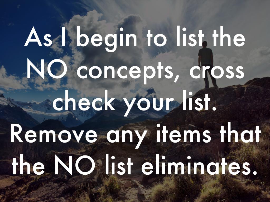 After seeing the YES list make your list of ideas of what the concept could be. Every item in the YES list must agree with your concept.
