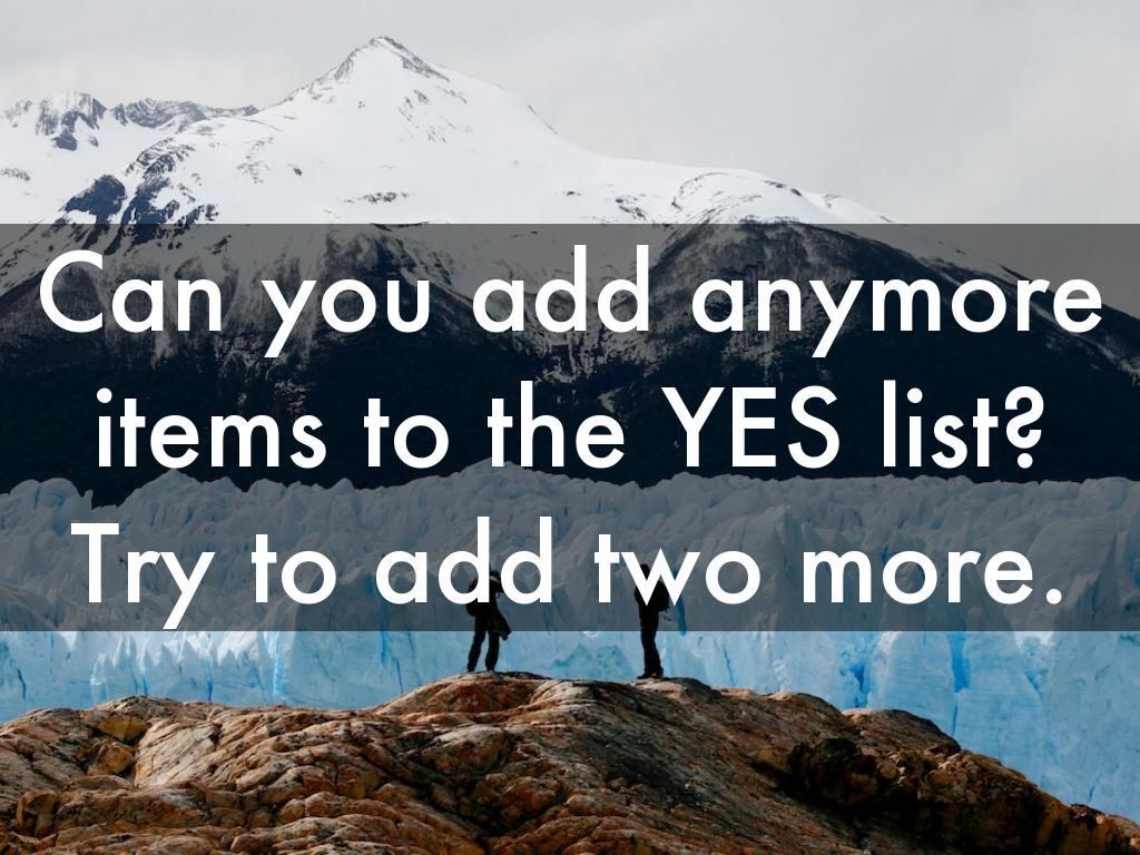 As the lists appear identify similarities the YES list may describe. Use the NO list to double check your idea.