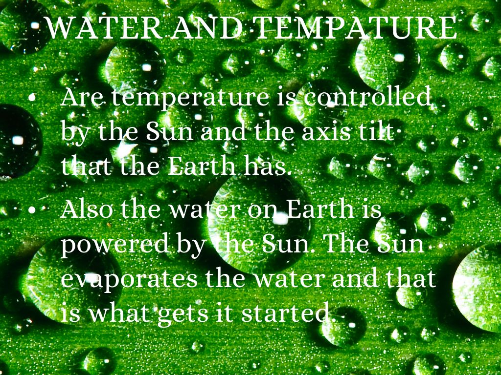 Are temperature is controlled by the Sun and the axis tilt that the Earth has.