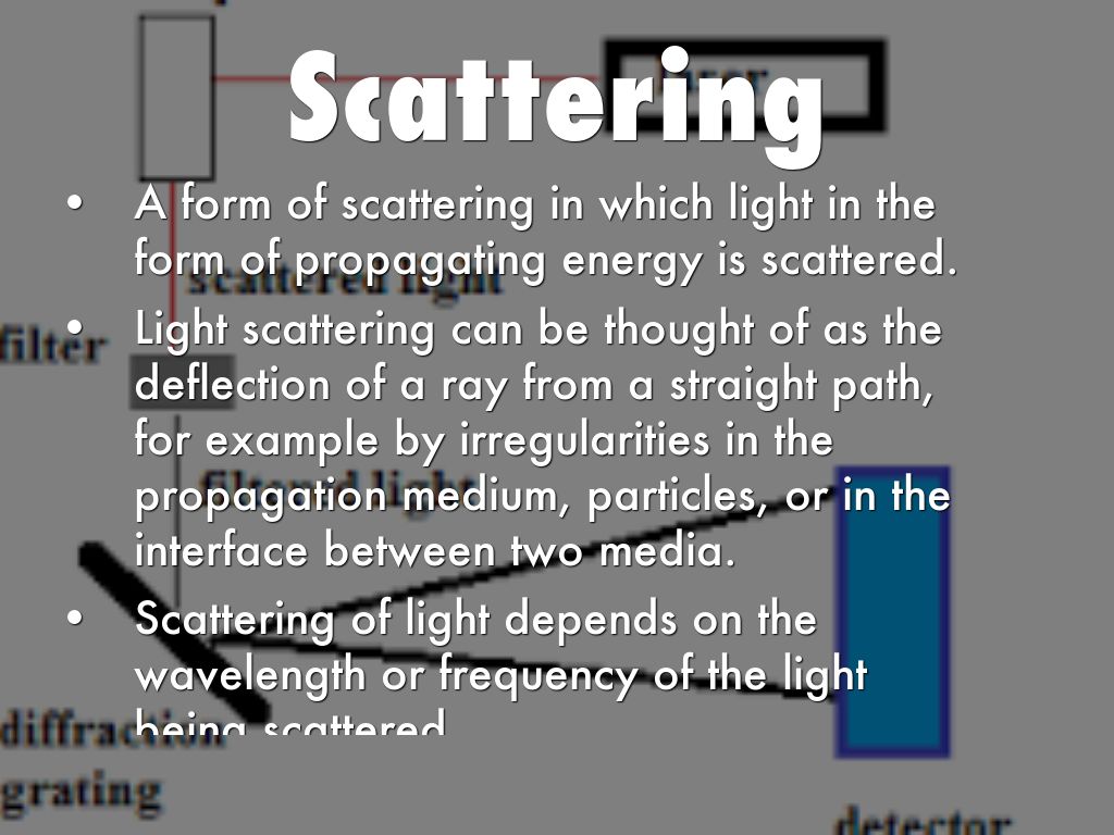 Light scattering can be thought of as the deflection of a ray from a straight path, for example by irregularities in the propagation medium, particles, or in the interface between two media.
