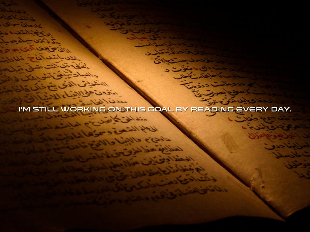 I'M STILL WORKING ON THIS GOAL BY READING EVERY DAY.