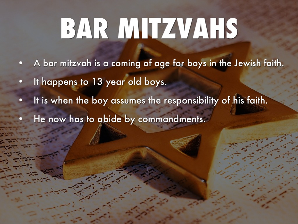 A bar mitzvah is a coming of age for boys in the Jewish faith.