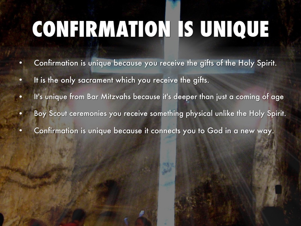 Confirmation is unique because you receive the gifts of the Holy Spirit.