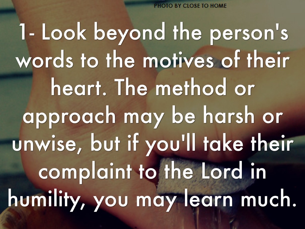 1- Look beyond the person's words to the motives of their heart. The method or approach may be harsh or unwise, but if you'll take their complaint to the Lord in humility, you may learn much.