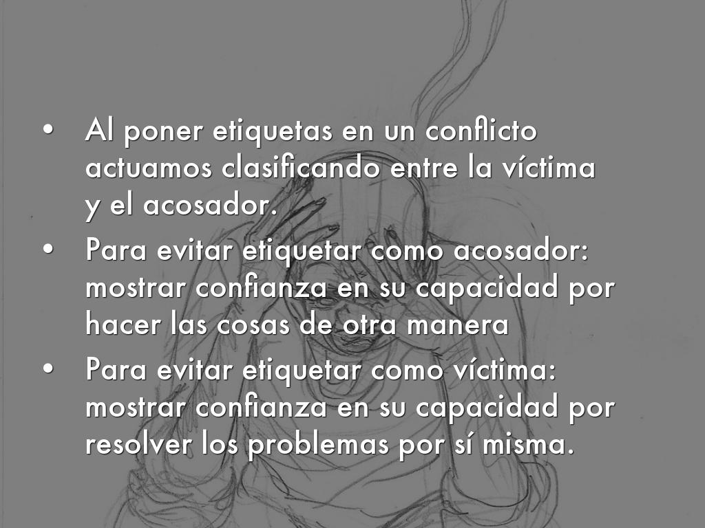 - Al poner etiquetas en un conflicto actuamos clasificando entre la víctima y el acosador.