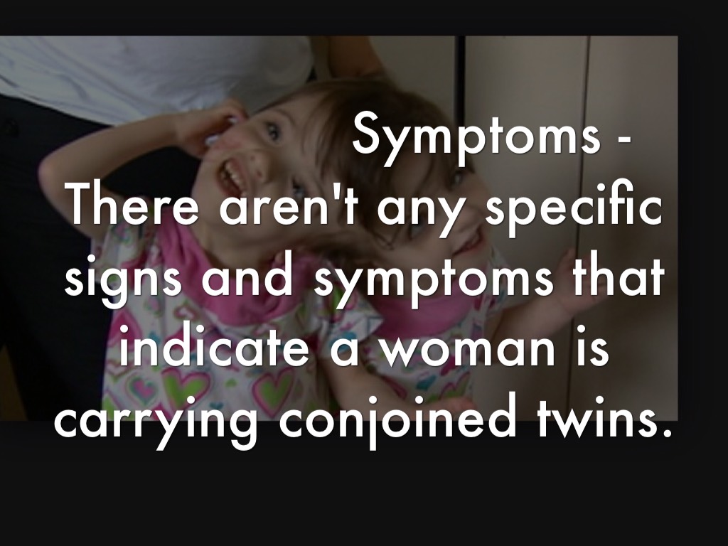 There aren't any specific signs and symptoms that indicate a woman is carrying conjoined twins.