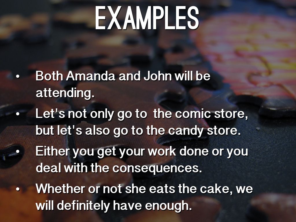 • both, and; not only, but also; either, or; whether, or; neither, nor