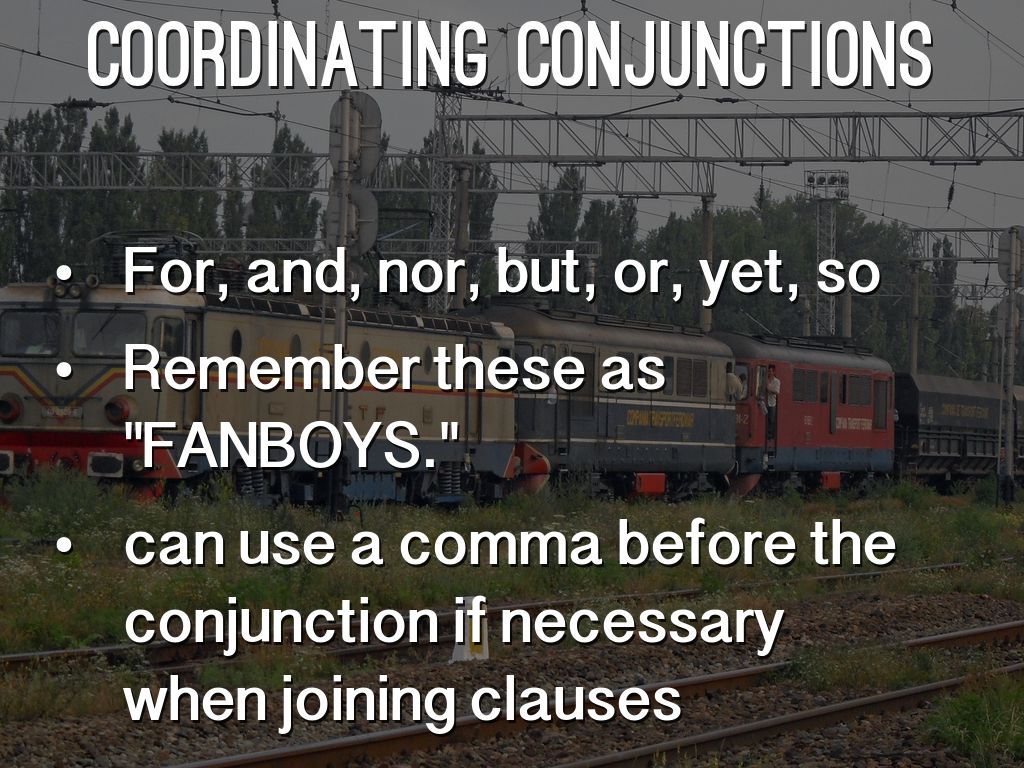 • For, and, nor, but, or, yet, so