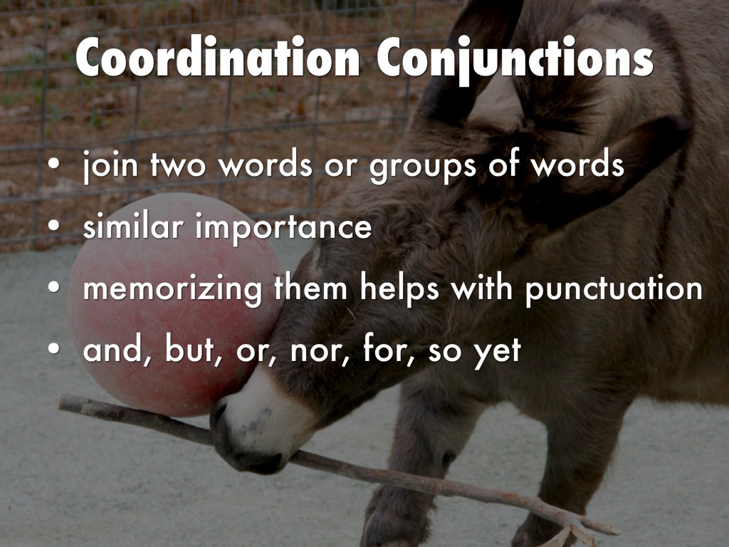 = and, but, or, nor, for, so, yet