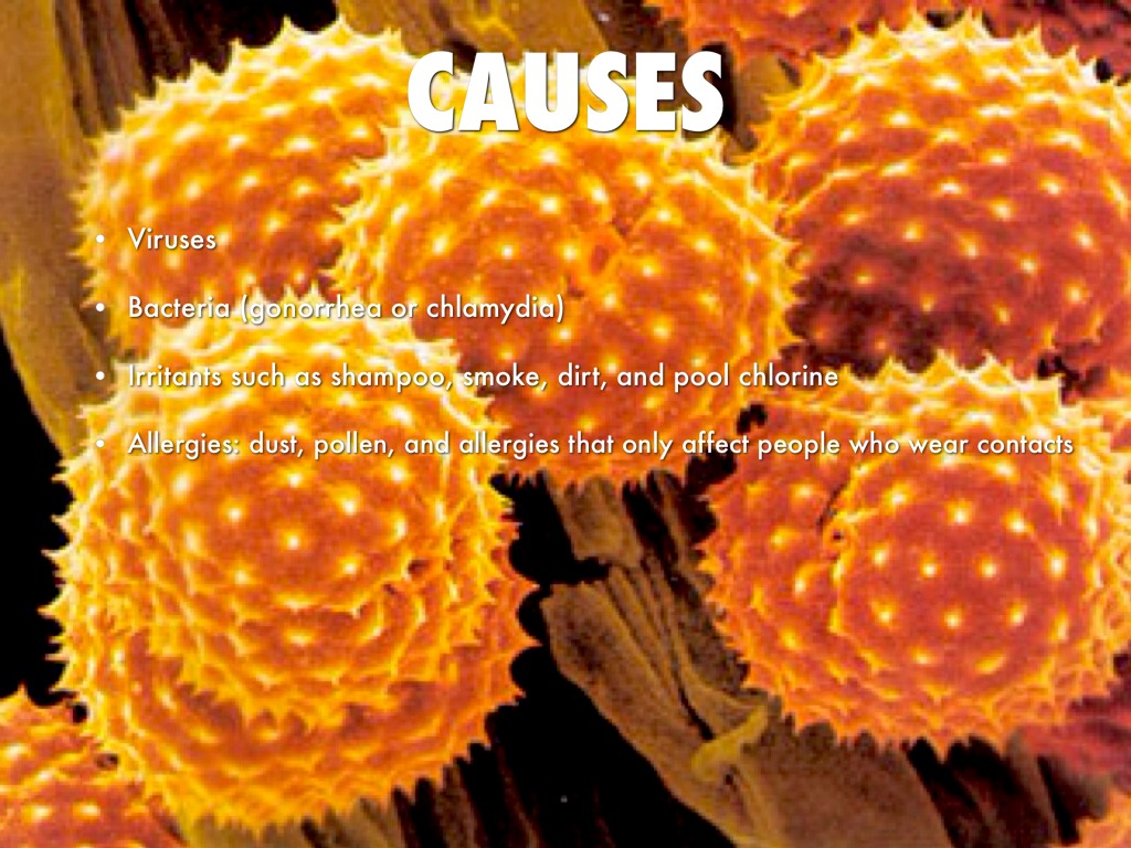 Allergies: dust, pollen, and allergies that only affect people who wear contacts