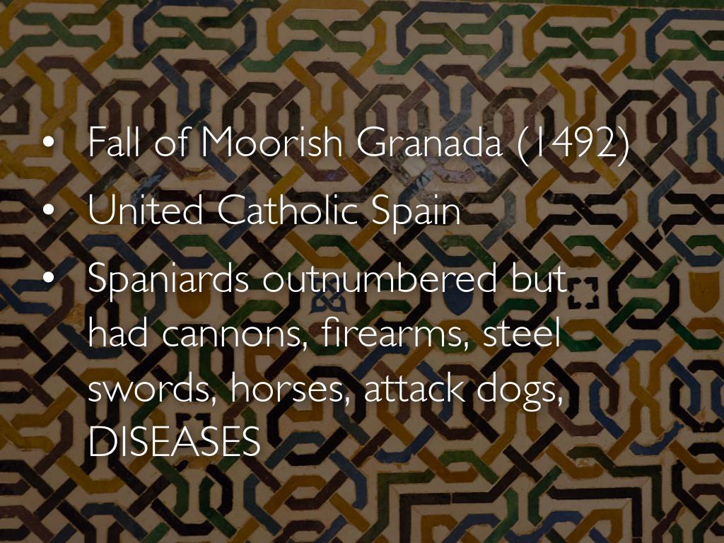 - Spaniards outnumbered but had cannons, firearms, steel swords, horses, attack dogs, DISEASES
