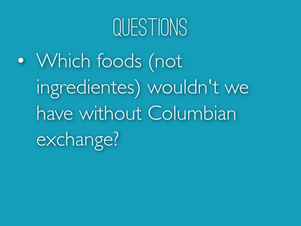 - Which foods (not ingredientes) wouldn't we have without Columbian exchange?