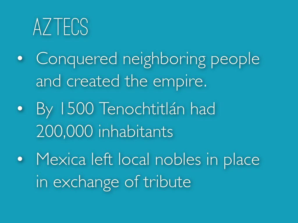 - By 1500 Tenochtitlán had 200,000 inhabitants