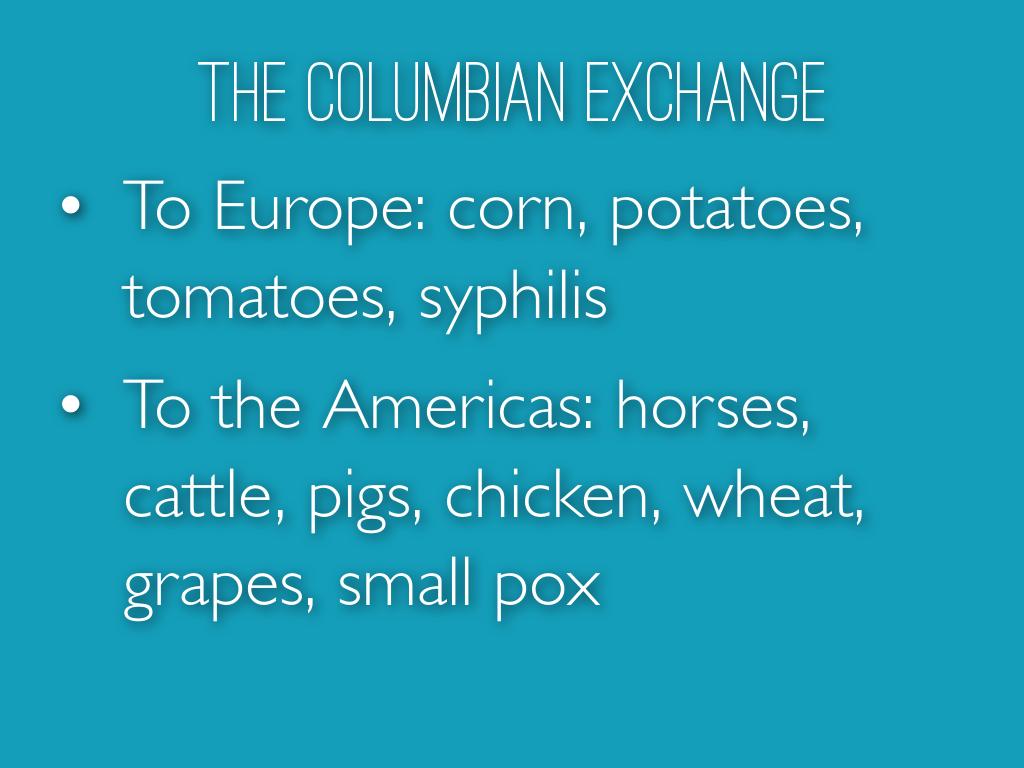 - To Europe: corn, potatoes, tomatoes, syphilis