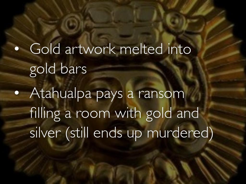 - Atahualpa pays a ransom filling a room with gold and silver (still ends up murdered)