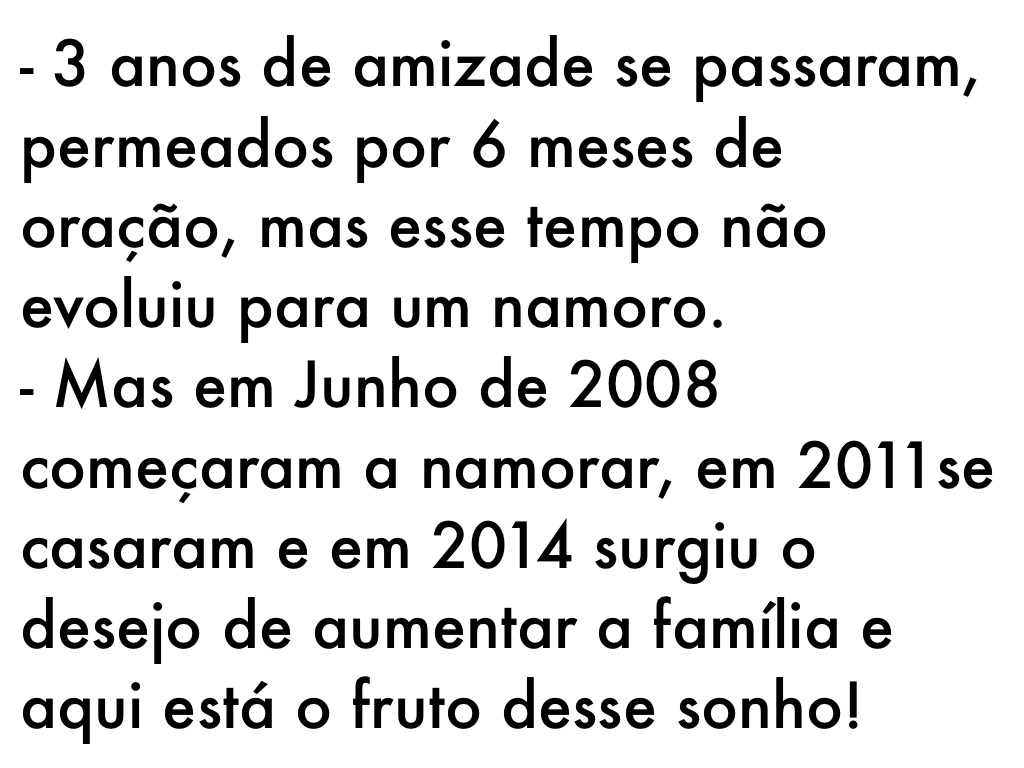 - Mas em Junho de 2008 começaram a namorar, em 2011se casaram e em 2014 surgiu o desejo de aumentar a família e aqui está o fruto desse sonho!