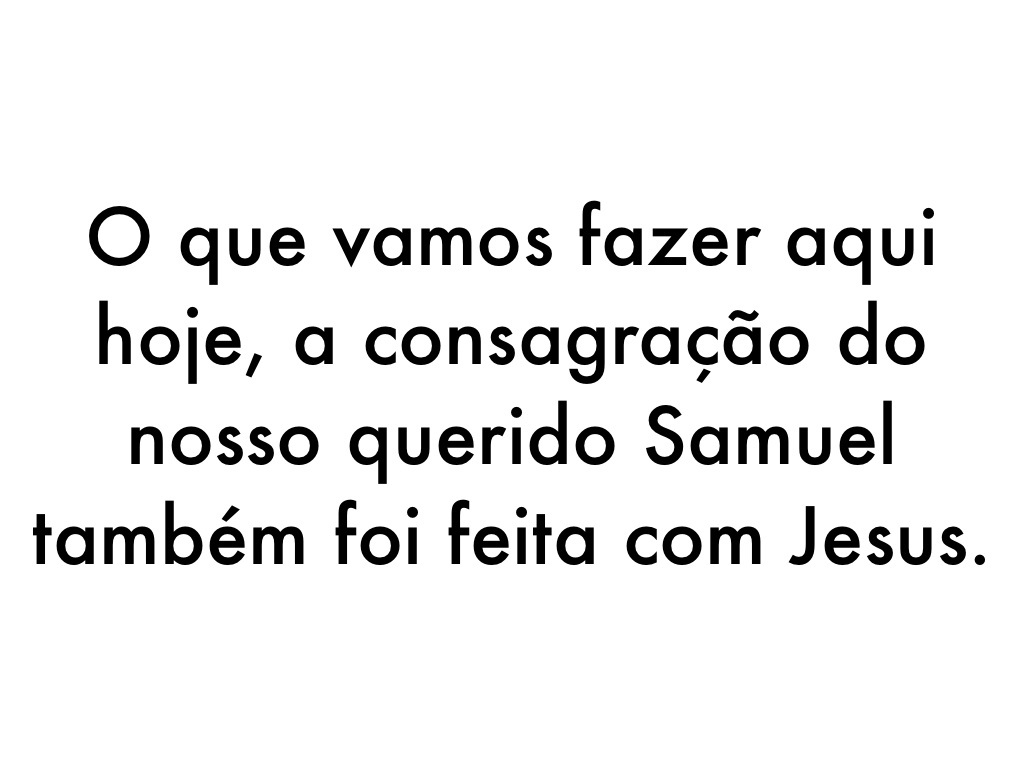 O que vamos fazer aqui hoje, a consagração do nosso querido Samuel também foi feita com Jesus.