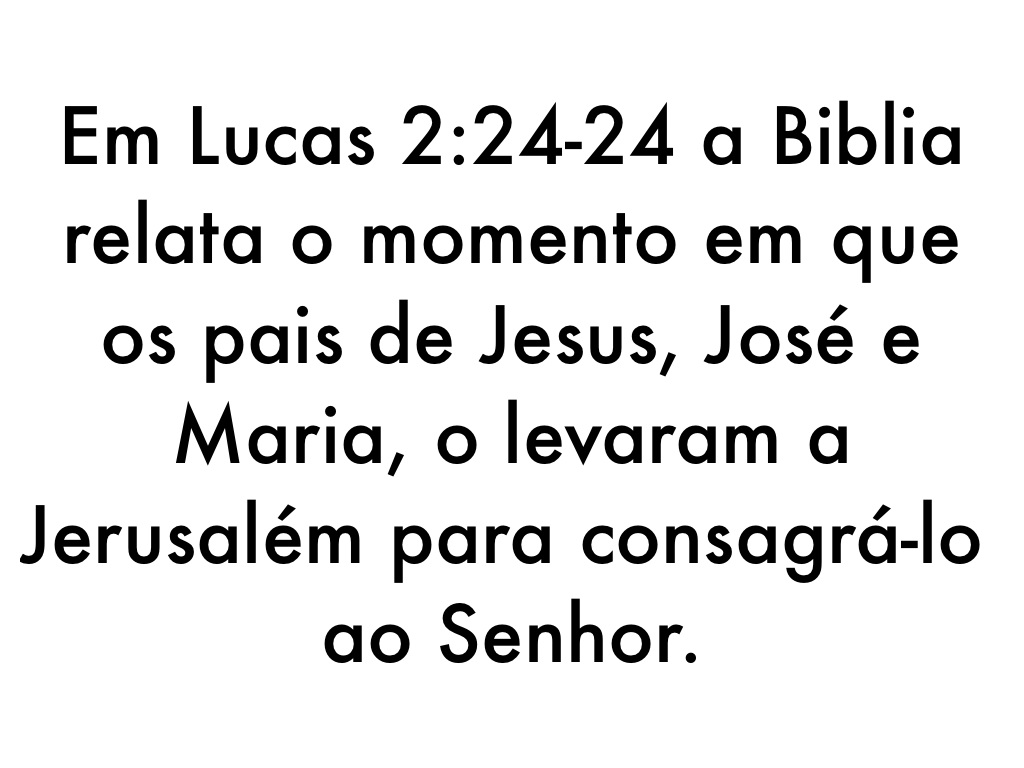 Em Lucas 2:24-24 a Biblia relata o momento em que os pais de Jesus, José e Maria, o levaram a Jerusalém para consagrá-lo ao Senhor.