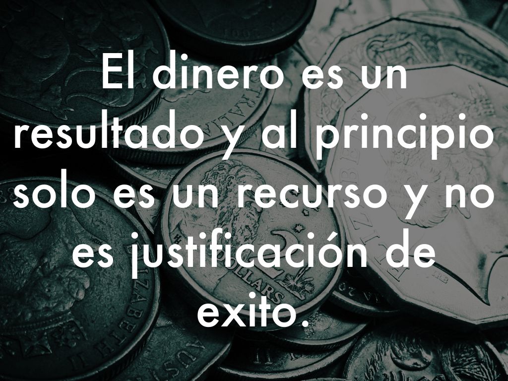 El dinero es un resultado y al principio solo es un recurso y no es justificación de exito.
