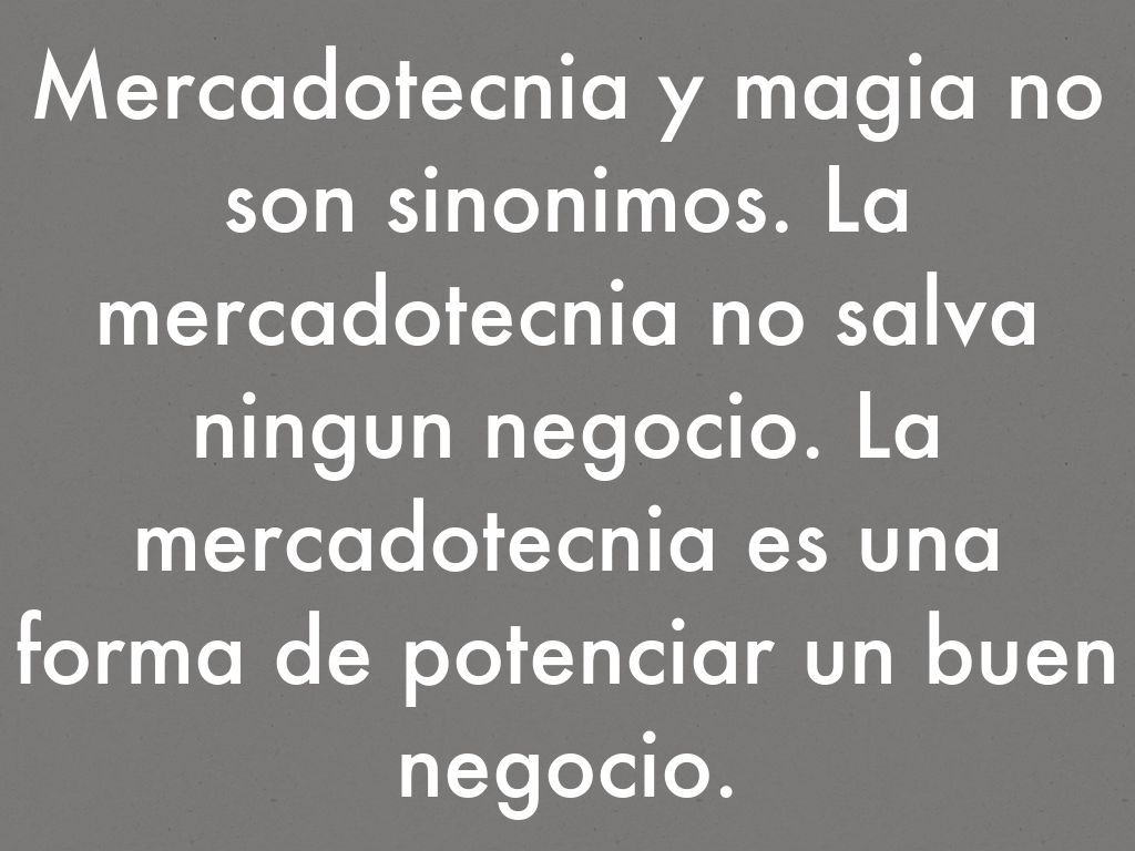 Mercadotecnia y magia no son sinonimos. La mercadotecnia no salva ningun negocio. La mercadotecnia es una forma de potenciar un buen negocio.