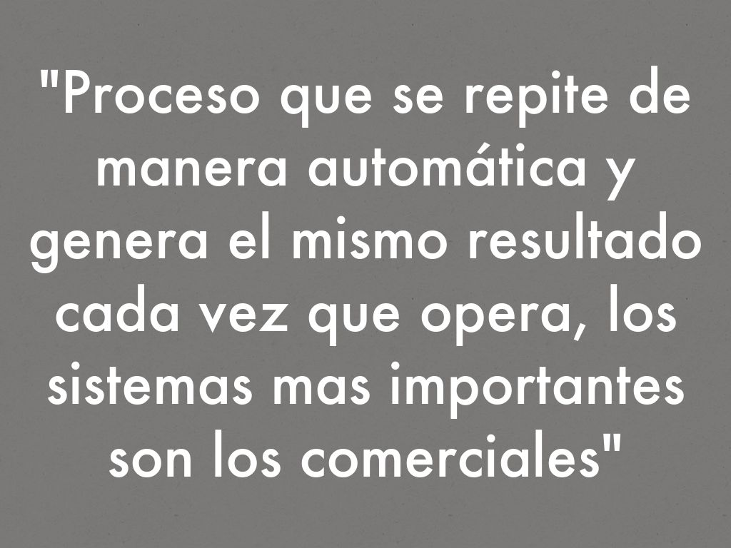 "Proceso que se repite de manera automática y genera el mismo resultado cada vez que opera, los sistemas mas importantes son los comerciales"