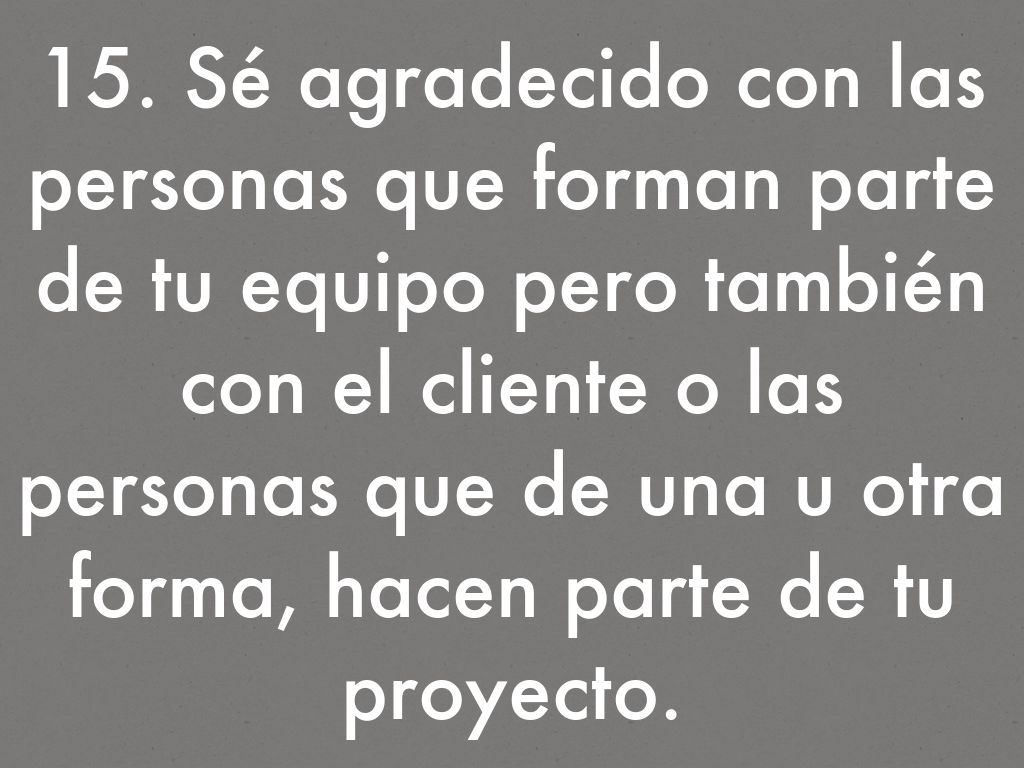 15. Sé agradecido con las personas que forman parte de tu equipo pero también con el cliente o las personas que de una u otra forma, hacen parte de tu proyecto.