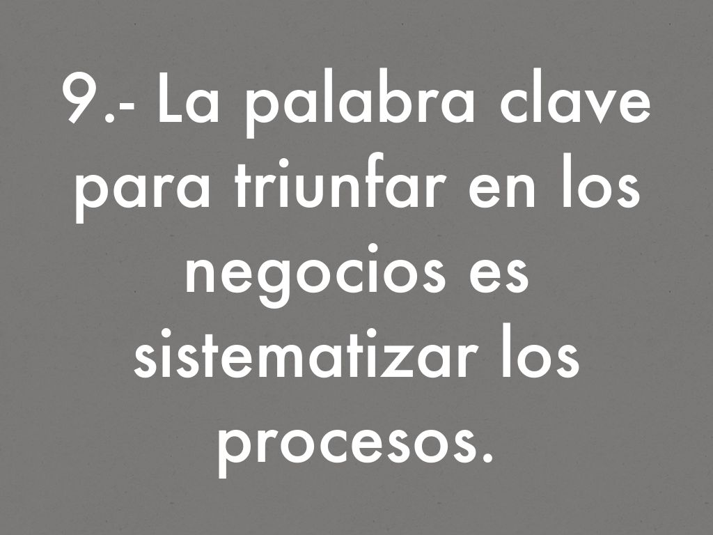 9.- La palabra clave para triunfar en los negocios es sistematizar los procesos.