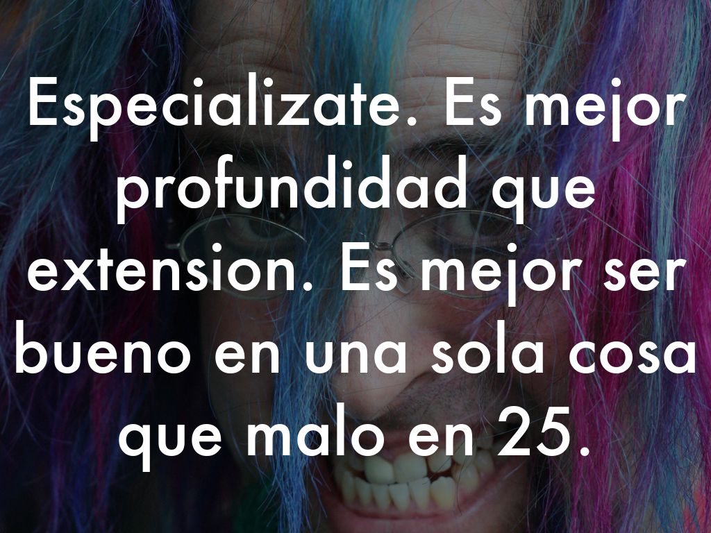 Especializate. Es mejor profundidad que extension. Es mejor ser bueno en una sola cosa que malo en 25.