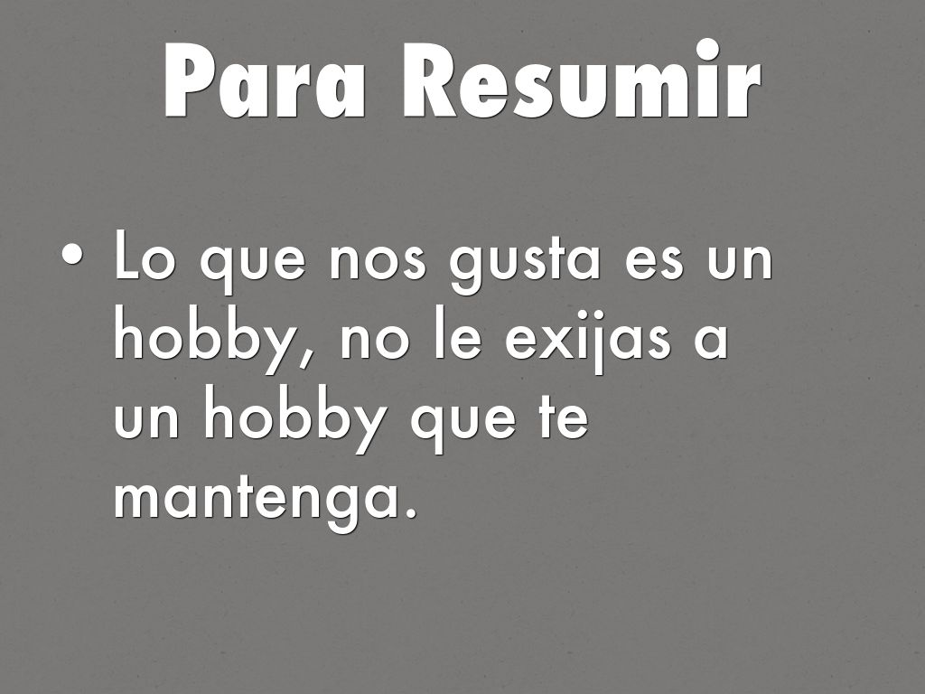 - Lo que nos gusta es un hobby, no le exijas a un hobby que te mantenga.