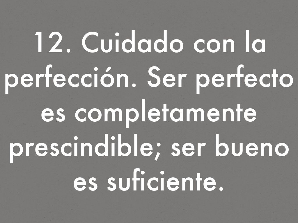 12. Cuidado con la perfección. Ser perfecto es completamente prescindible; ser bueno es suficiente.