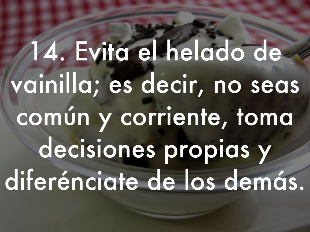 14. Evita el helado de vainilla; es decir, no seas común y corriente, toma decisiones propias y diferénciate de los demás.