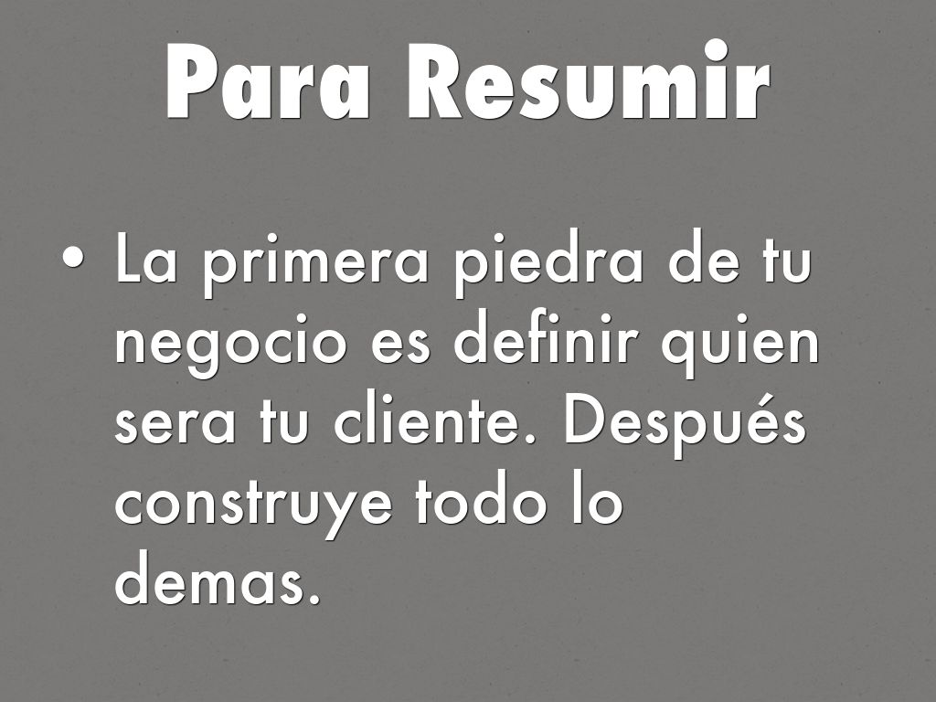 - La primera piedra de tu negocio es definir quien sera tu cliente. Después construye todo lo demas.