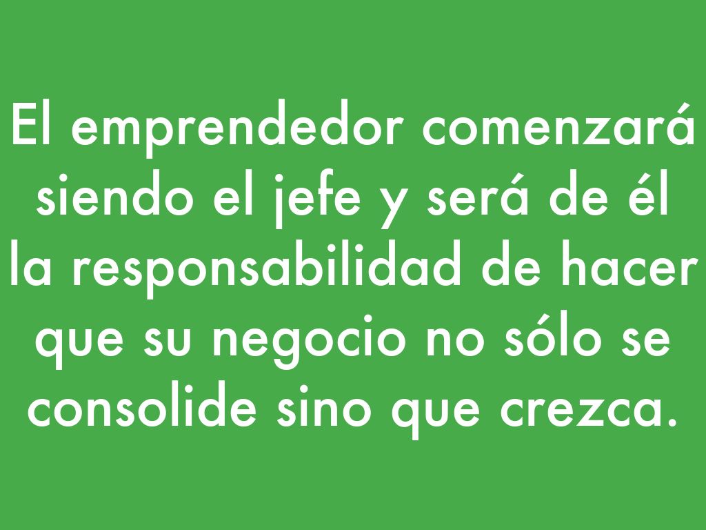 El emprendedor comenzará siendo el jefe y será de él la responsabilidad de hacer que su negocio no sólo se consolide sino que crezca.