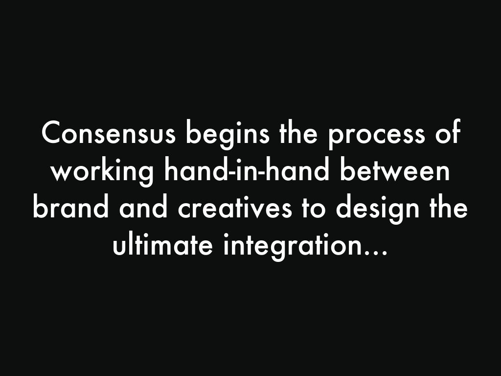 Consensus begins the process of working hand-in-hand between brand and creatives to design the ultimate integration...