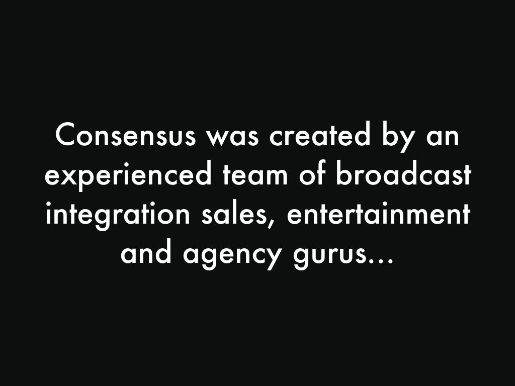 Consensus was created by an experienced team of broadcast integration sales, entertainment