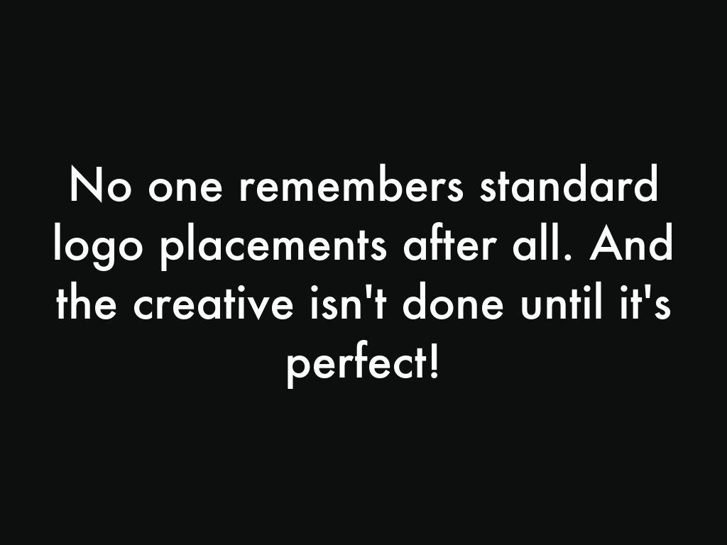 No one remembers standard logo placements after all. And the creative isn't done until it's perfect!
