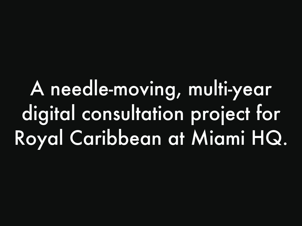 A needle-moving, multi-year digital consultation project for Royal Caribbean at Miami HQ.