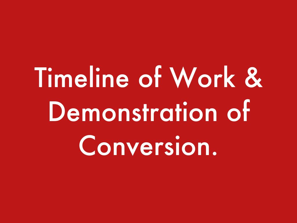 Timeline of Work & Demonstration of Conversion.