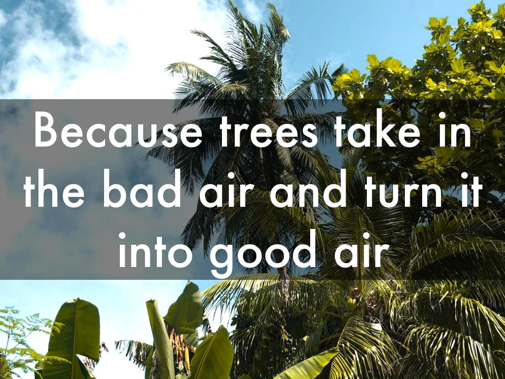 Because trees take in the bad air and turn it into good air