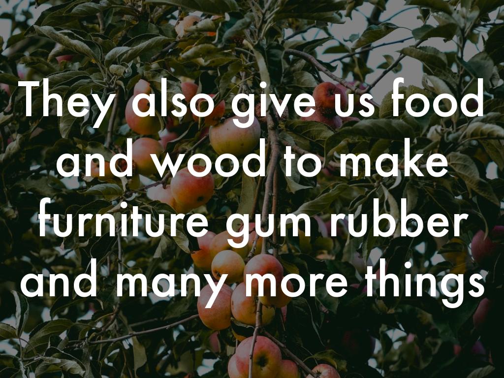 They also give us food and wood to make furniture gum rubber and many more things