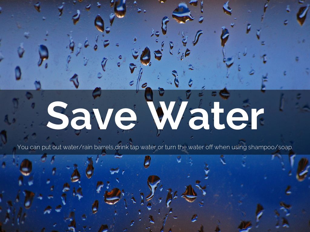 You can put out water/rain barrels,drink tap water,or turn the water off when using shampoo/soap.