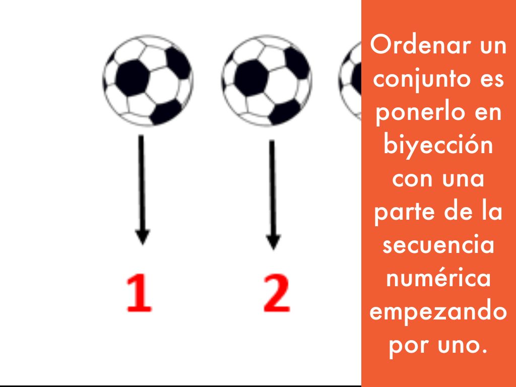 Ordenar un conjunto es ponerlo en biyección con una parte de la secuencia numérica empezando por uno.